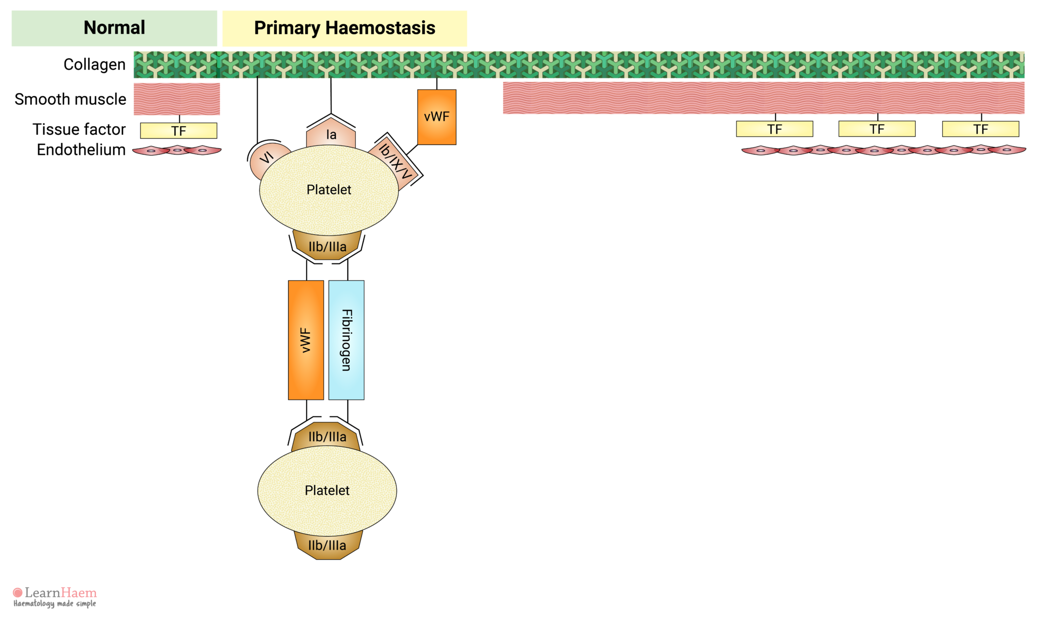 vWF can also bind directly to GP IIb/IIIa to facilitate further platelet adhesion and aggregation at the site of injury.