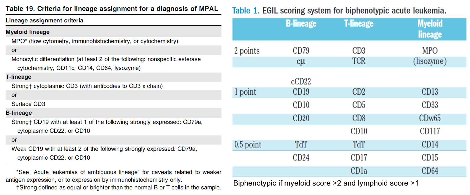 The abnormal blasts partially express B cell markers (CD19 and 79a). MPO, a myeloid marker, is positive. Although the blasts express B cell markers, this does not fulfill the criteria for diagnosis of mixed phenotype acute leukaemia (WHO 2017 classification).